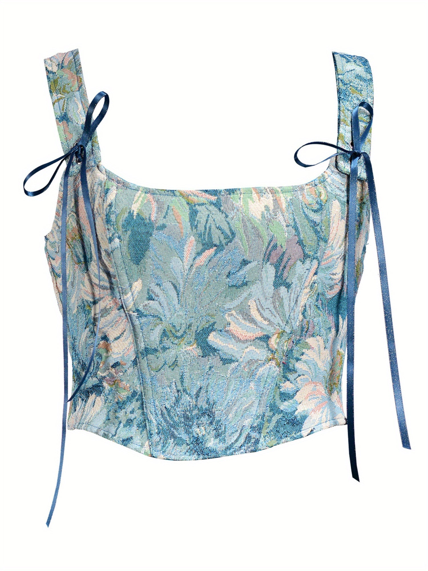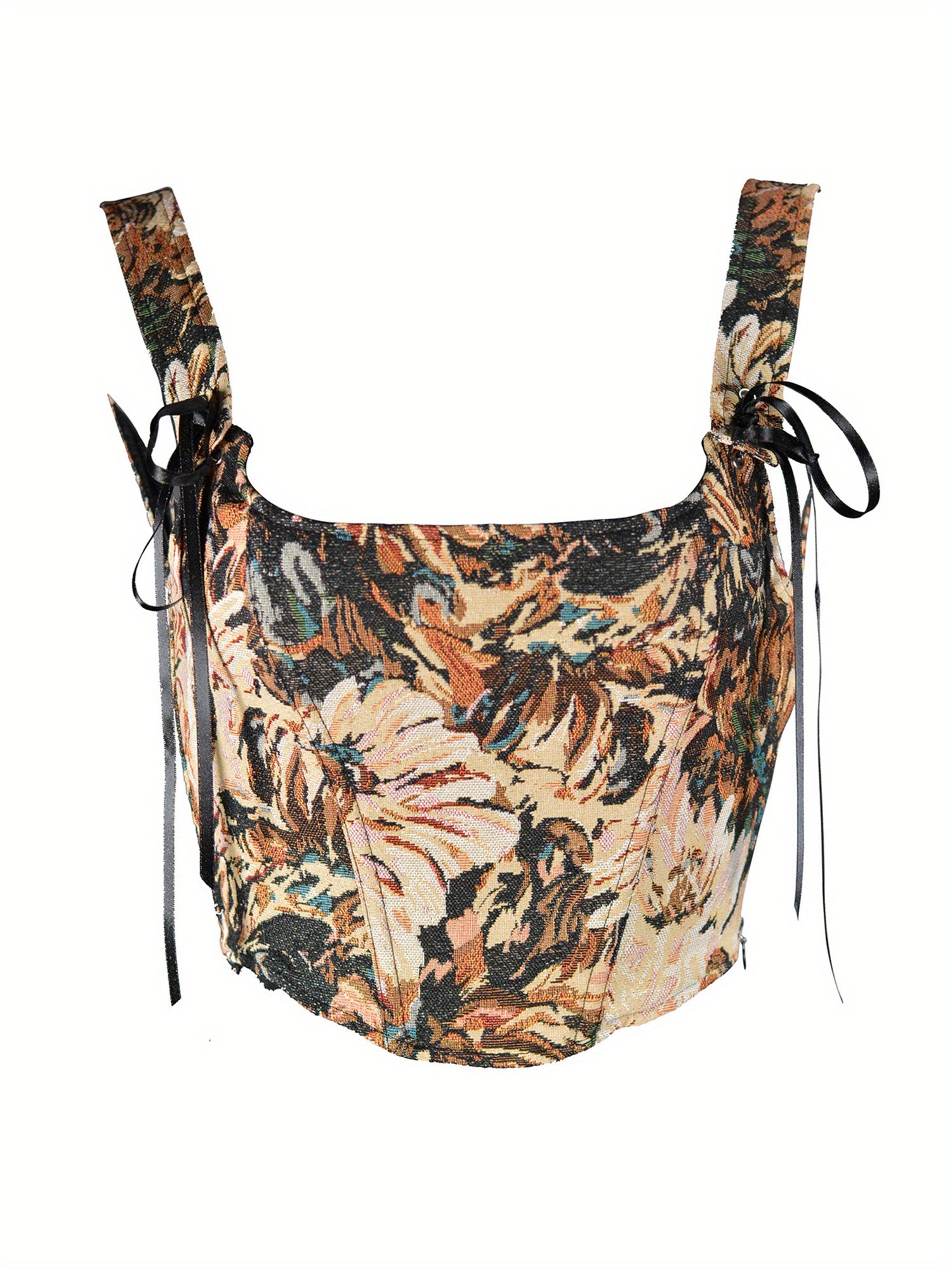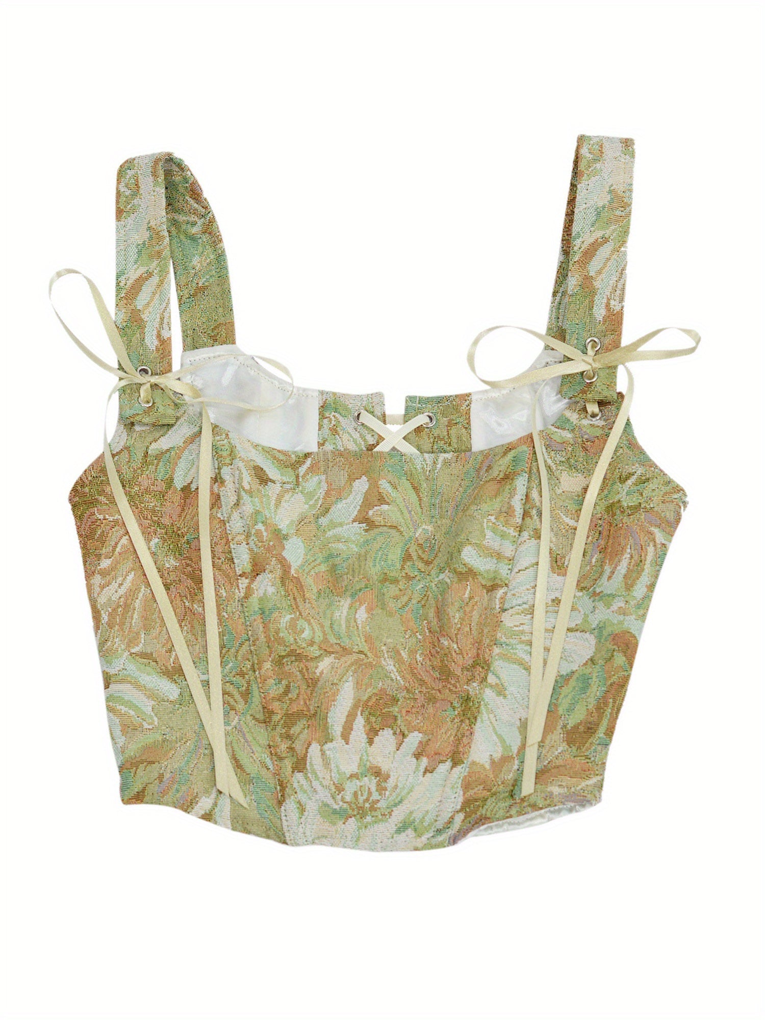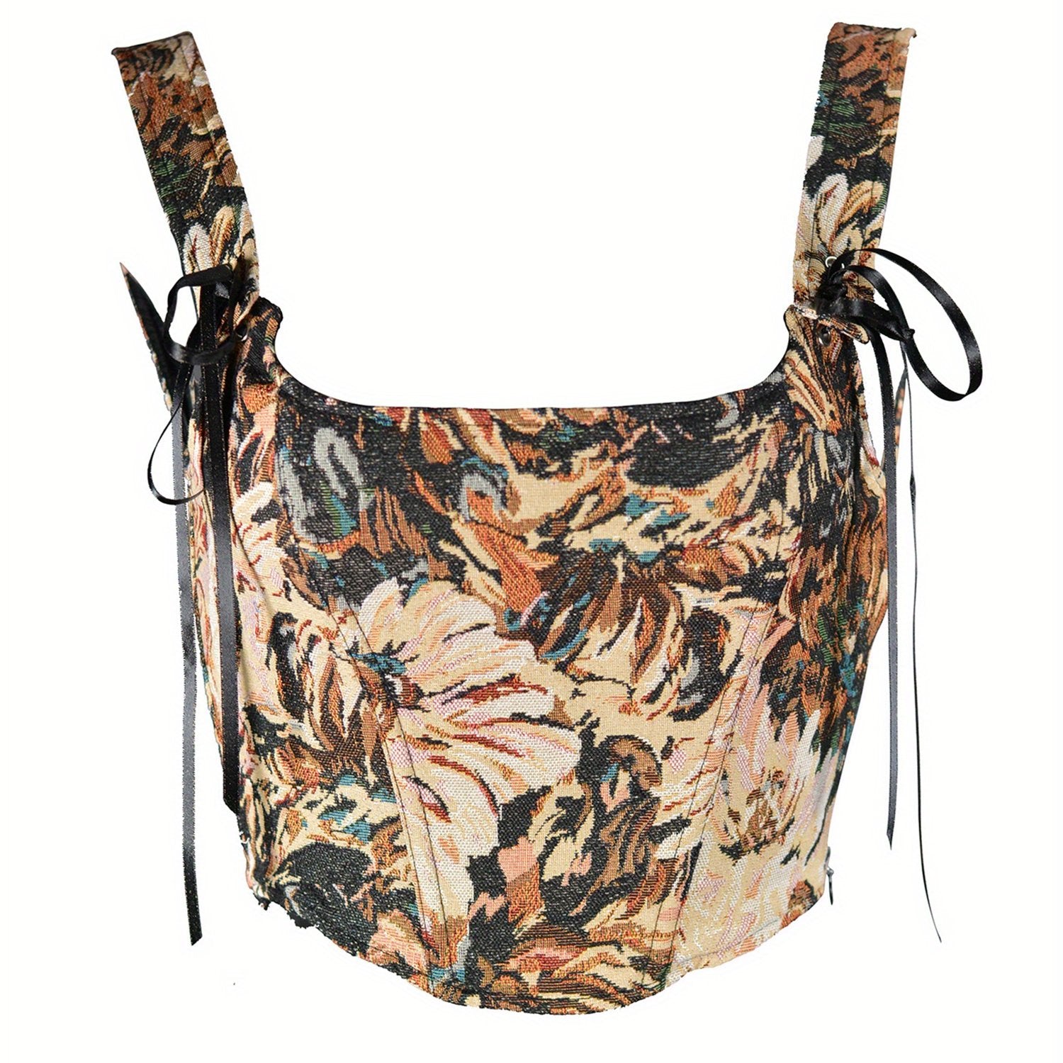 1pc Elegant Off-Shoulder Corset Tank Top for Women - Polyester Knit Fabric, All-Season Floral Slingback Vest with Tie Back Detail, Casual Summer Streetwear