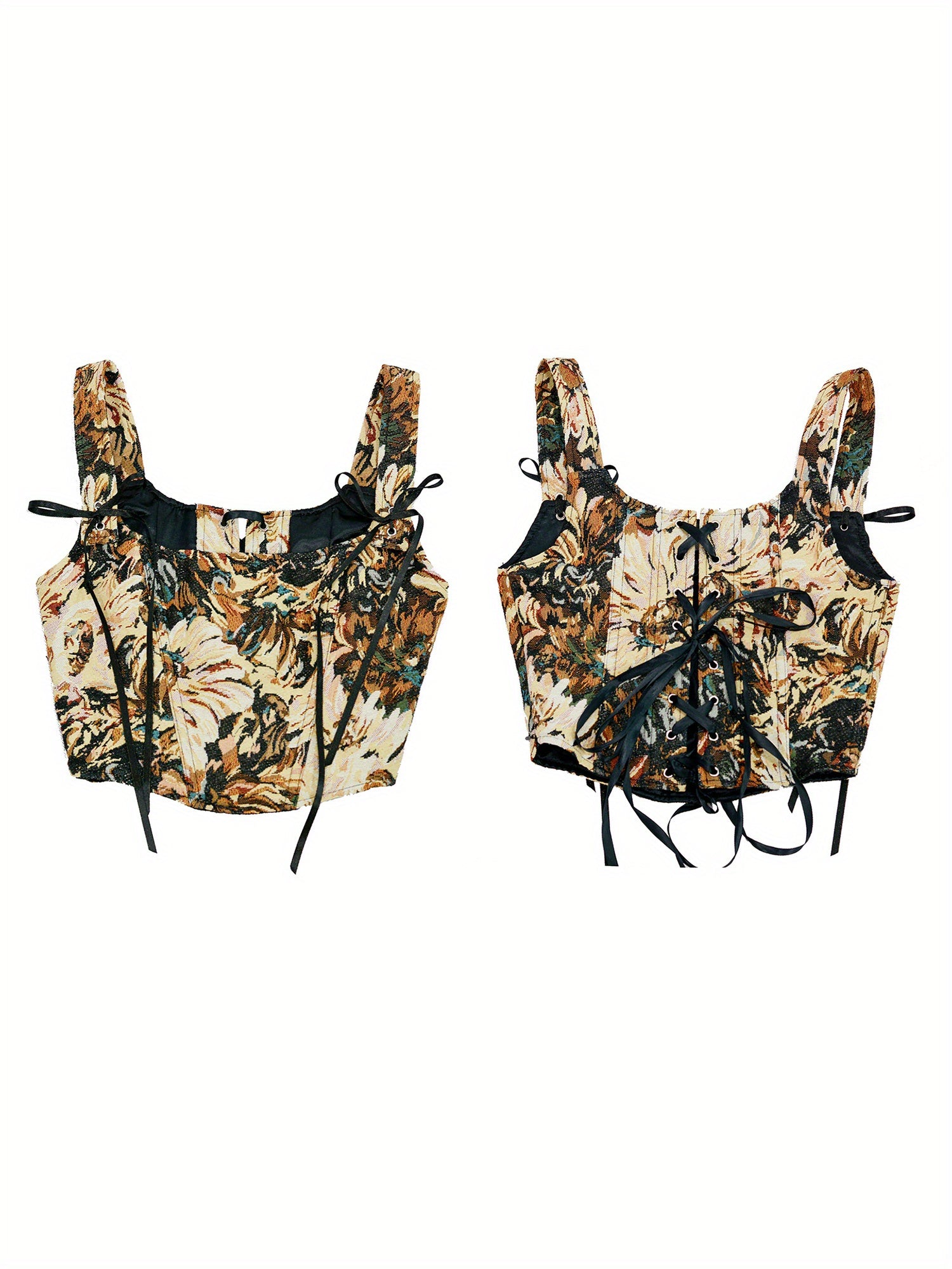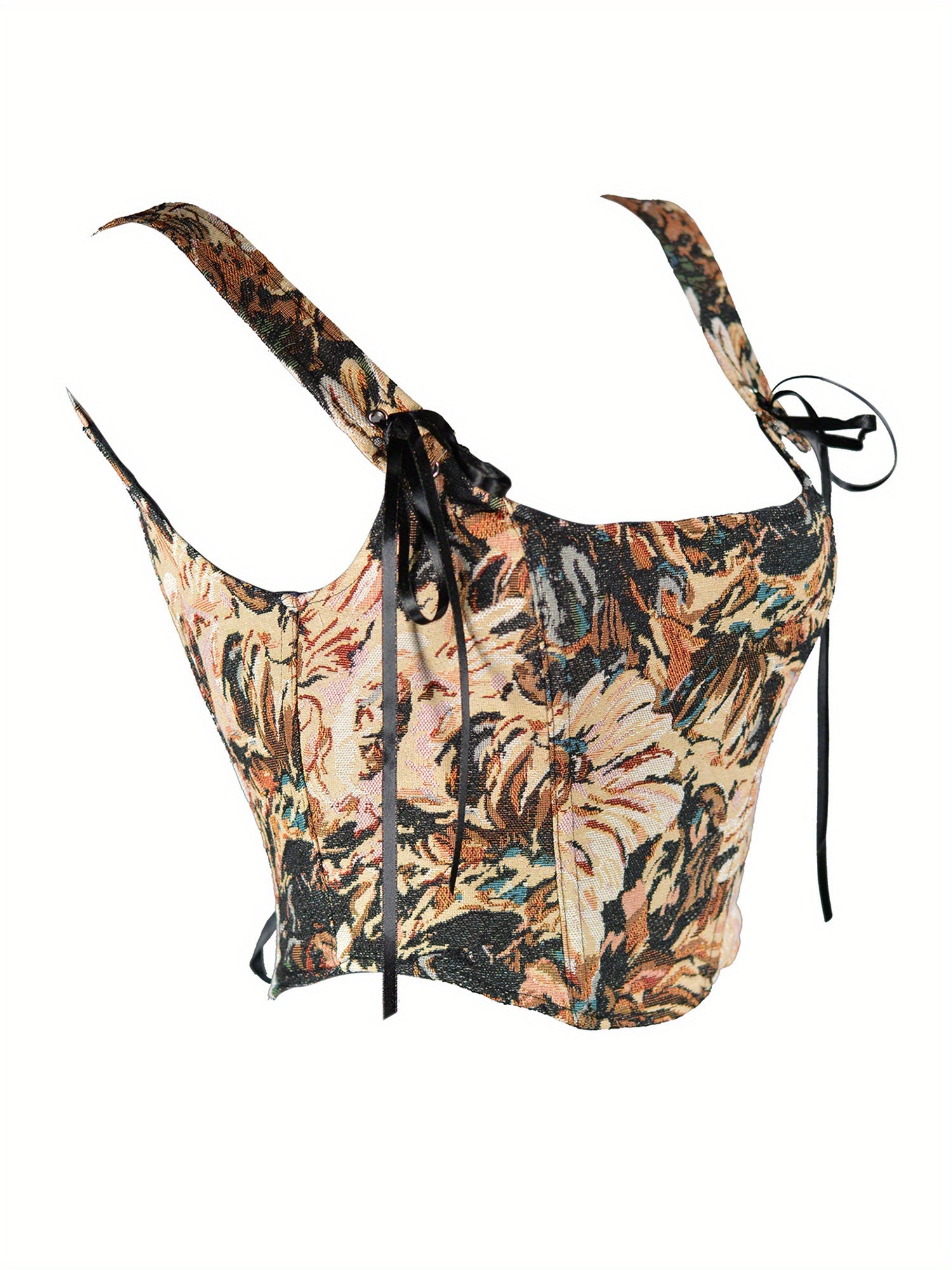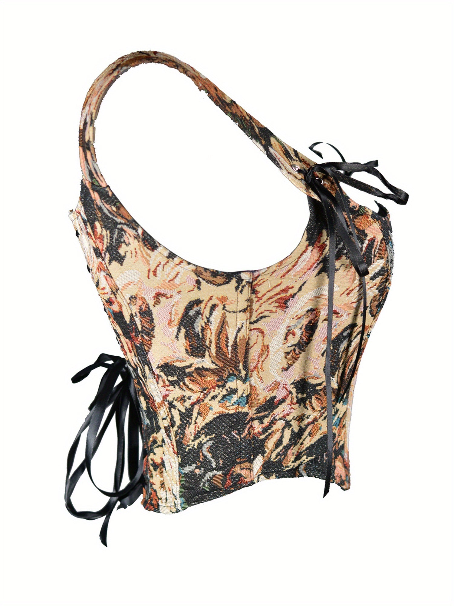 1pc Elegant Off-Shoulder Corset Tank Top for Women - Polyester Knit Fabric, All-Season Floral Slingback Vest with Tie Back Detail, Casual Summer Streetwear