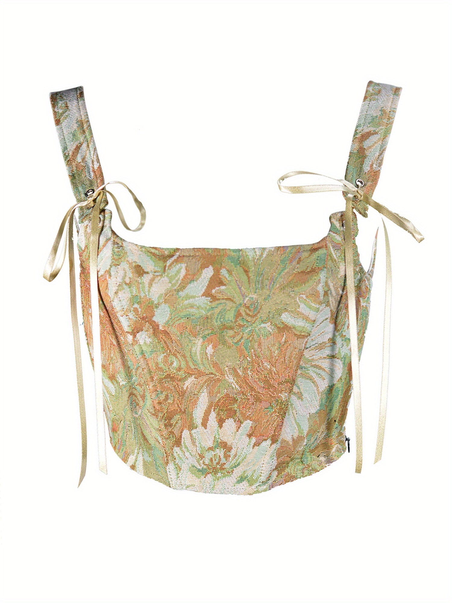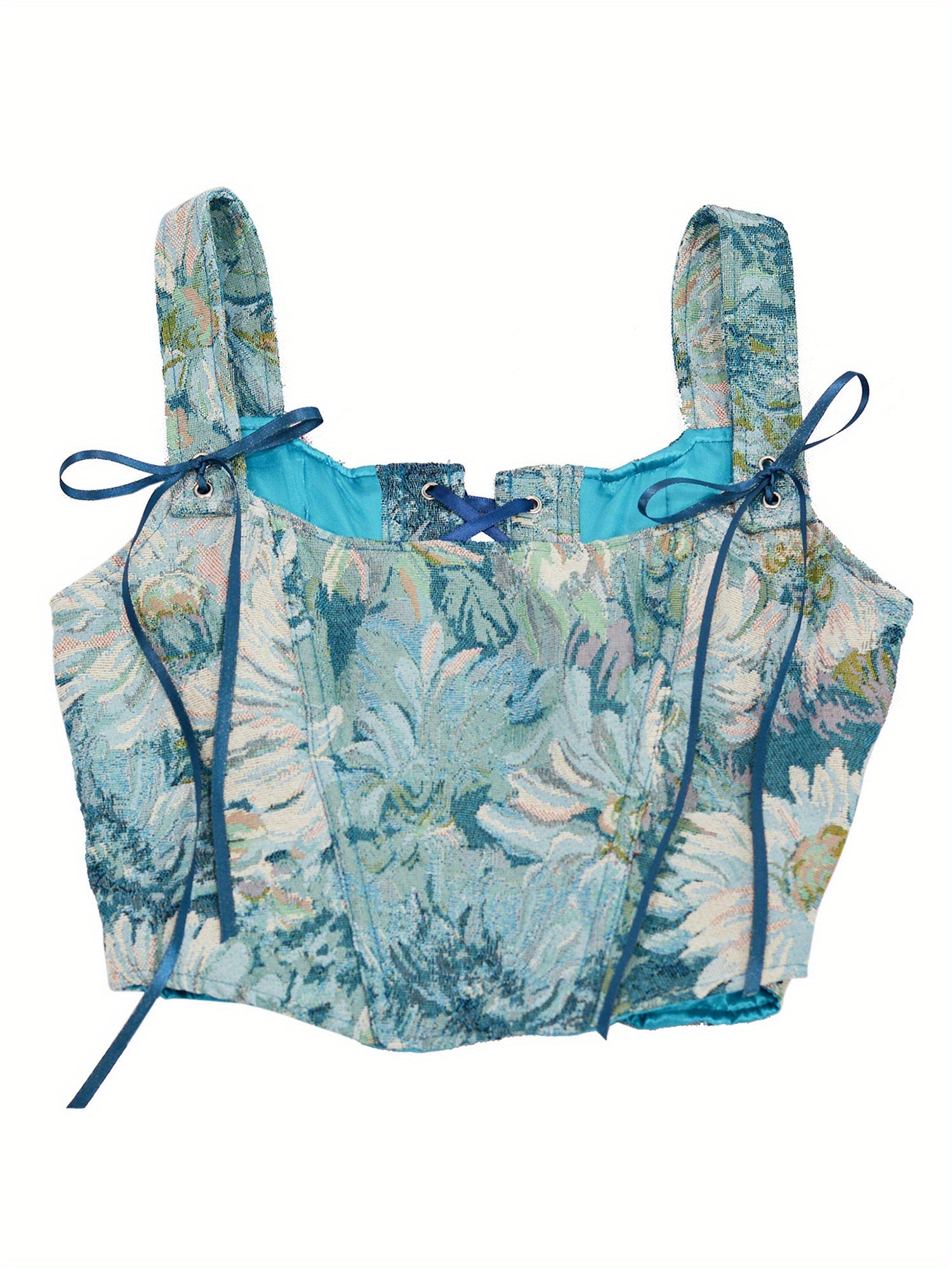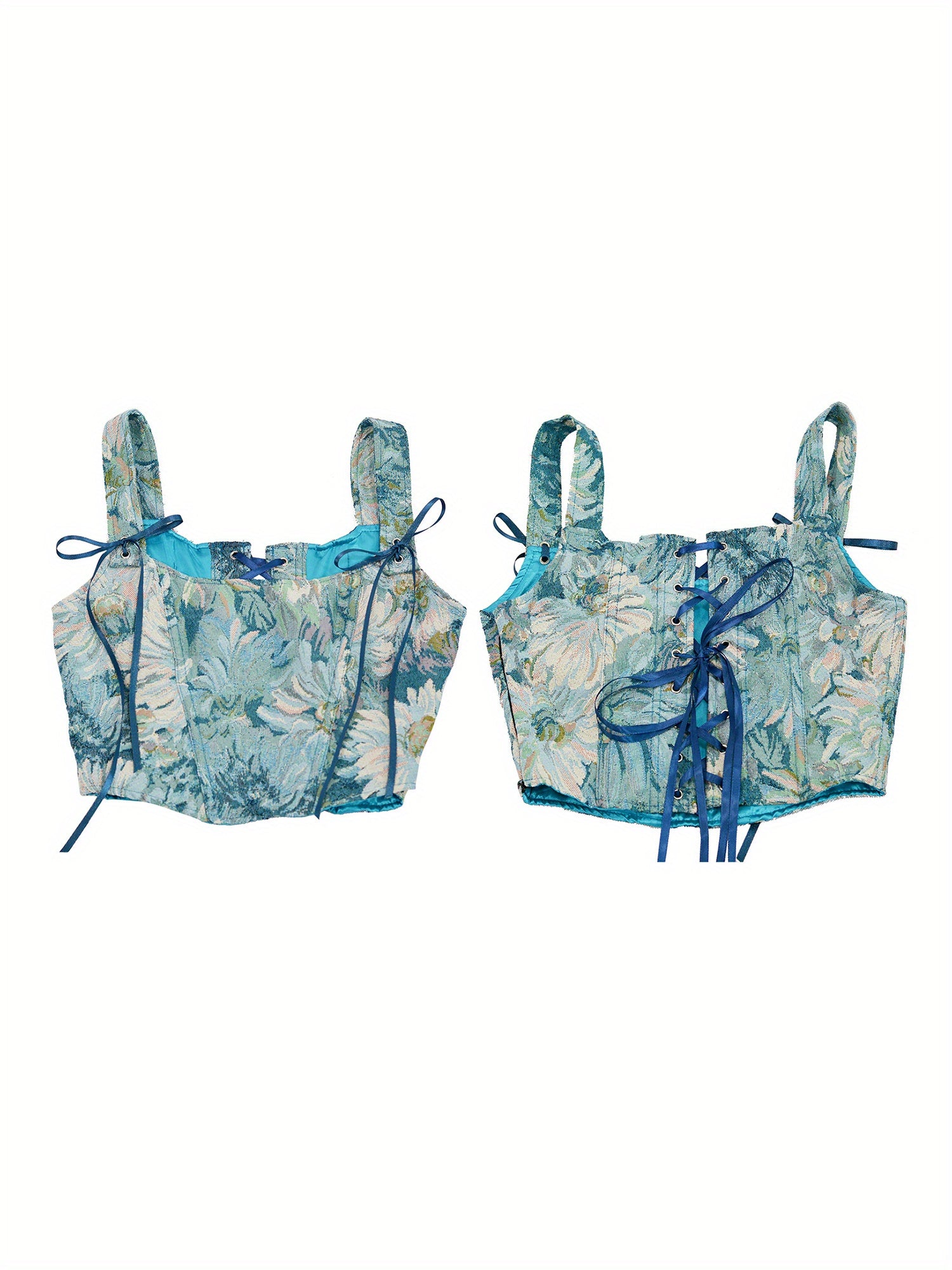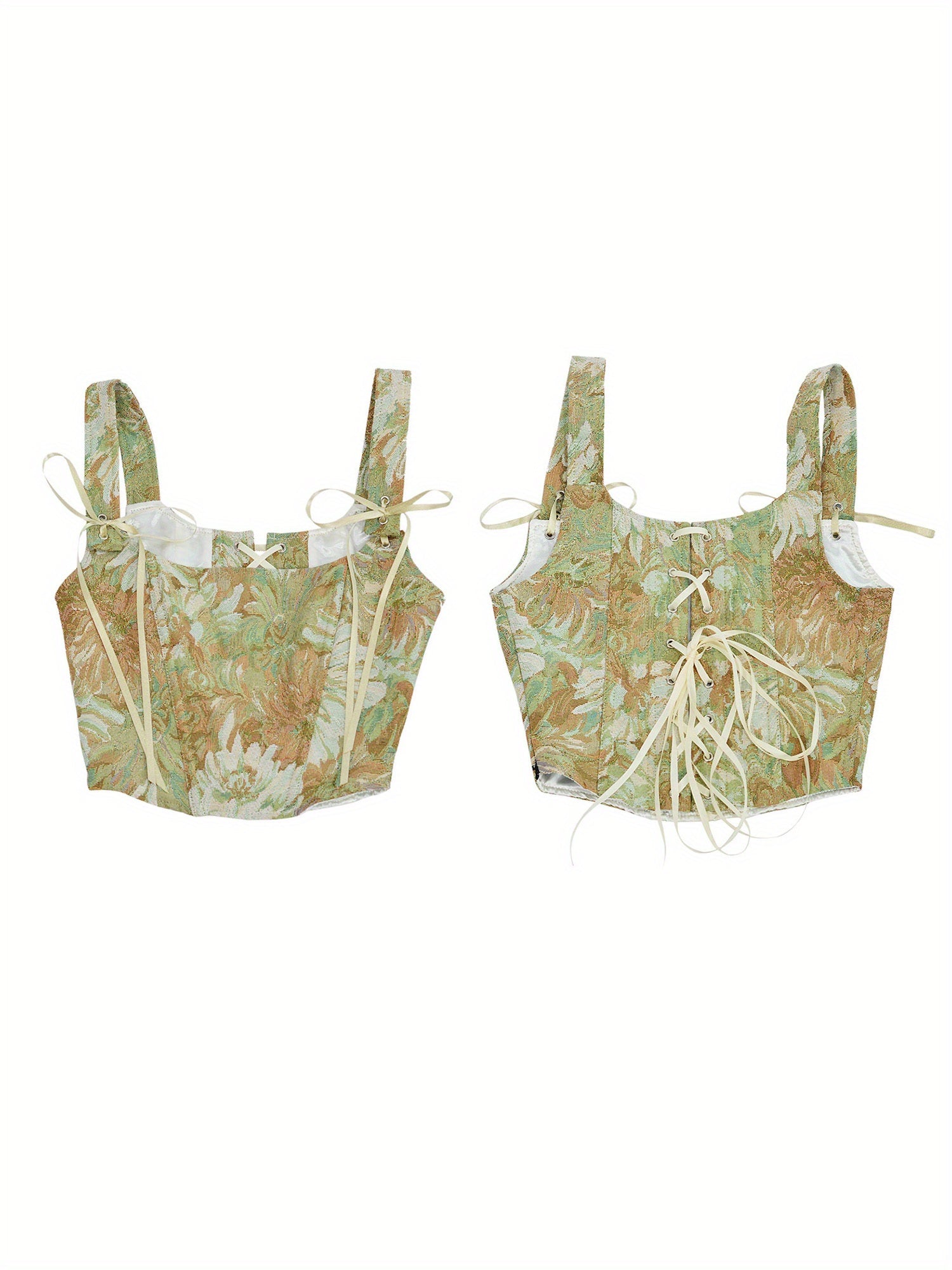 1pc Elegant Off-Shoulder Corset Tank Top for Women - Polyester Knit Fabric, All-Season Floral Slingback Vest with Tie Back Detail, Casual Summer Streetwear