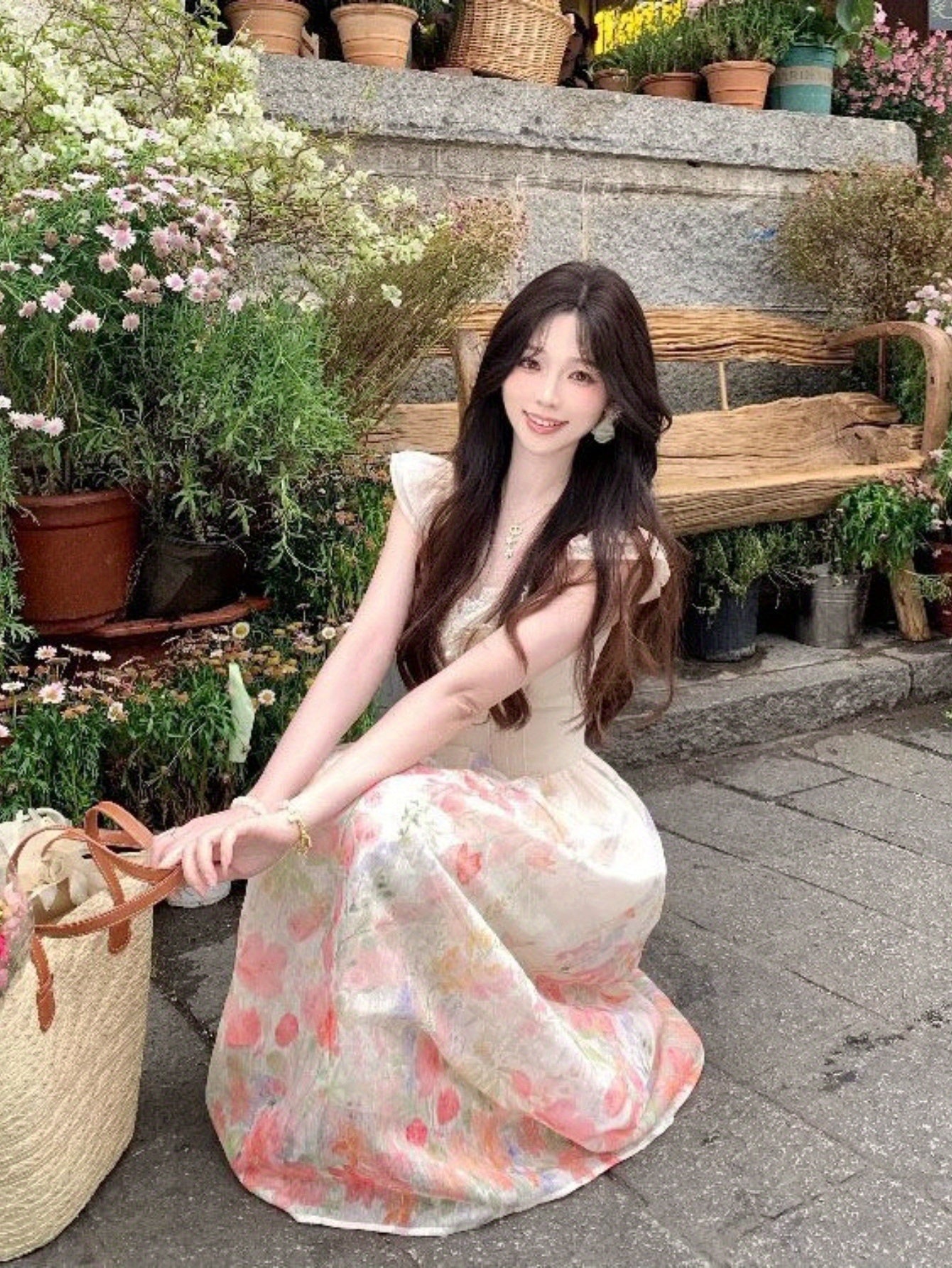 Elegant Floral Print Mini Dress with Puff Sleeves - Chic A-Line Design, Lace Detailing, Perfect for Spring & Summer, Women'S Fashion, Floral Dress