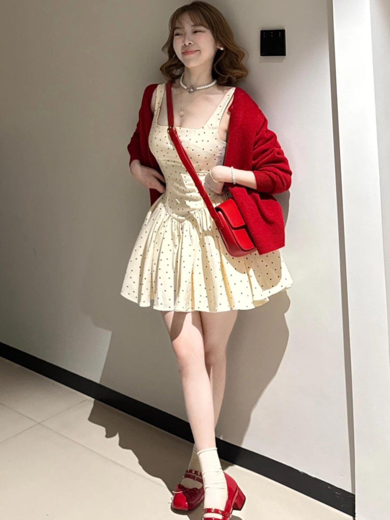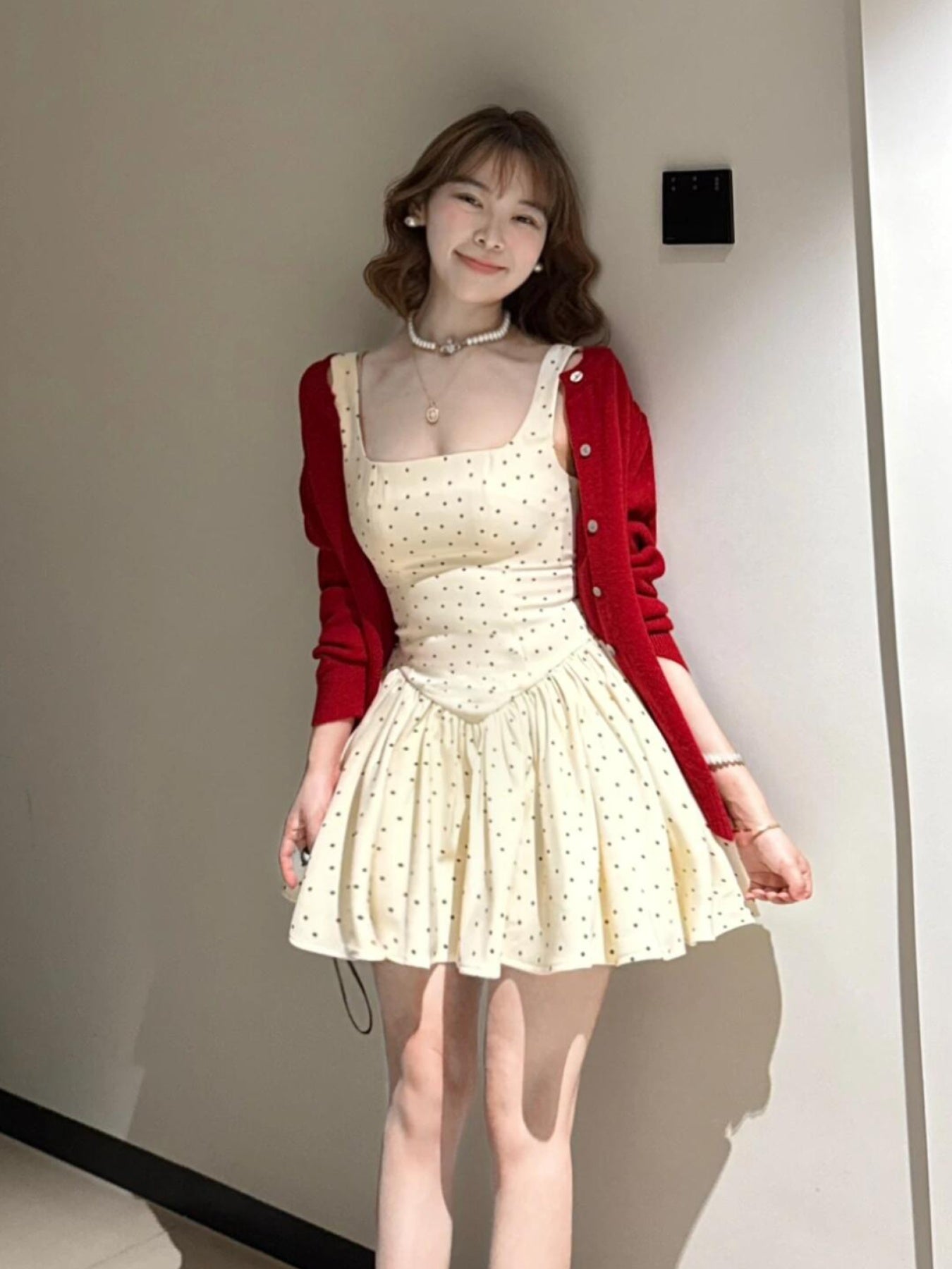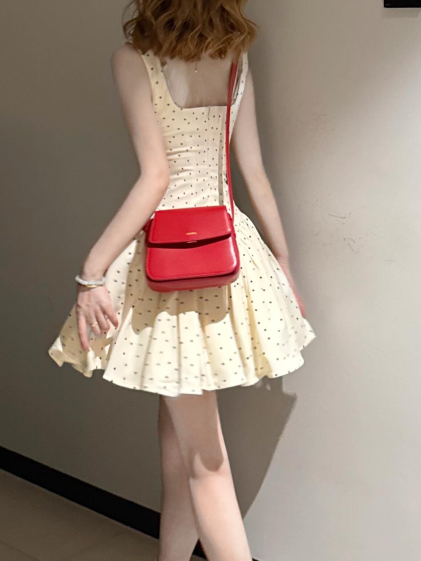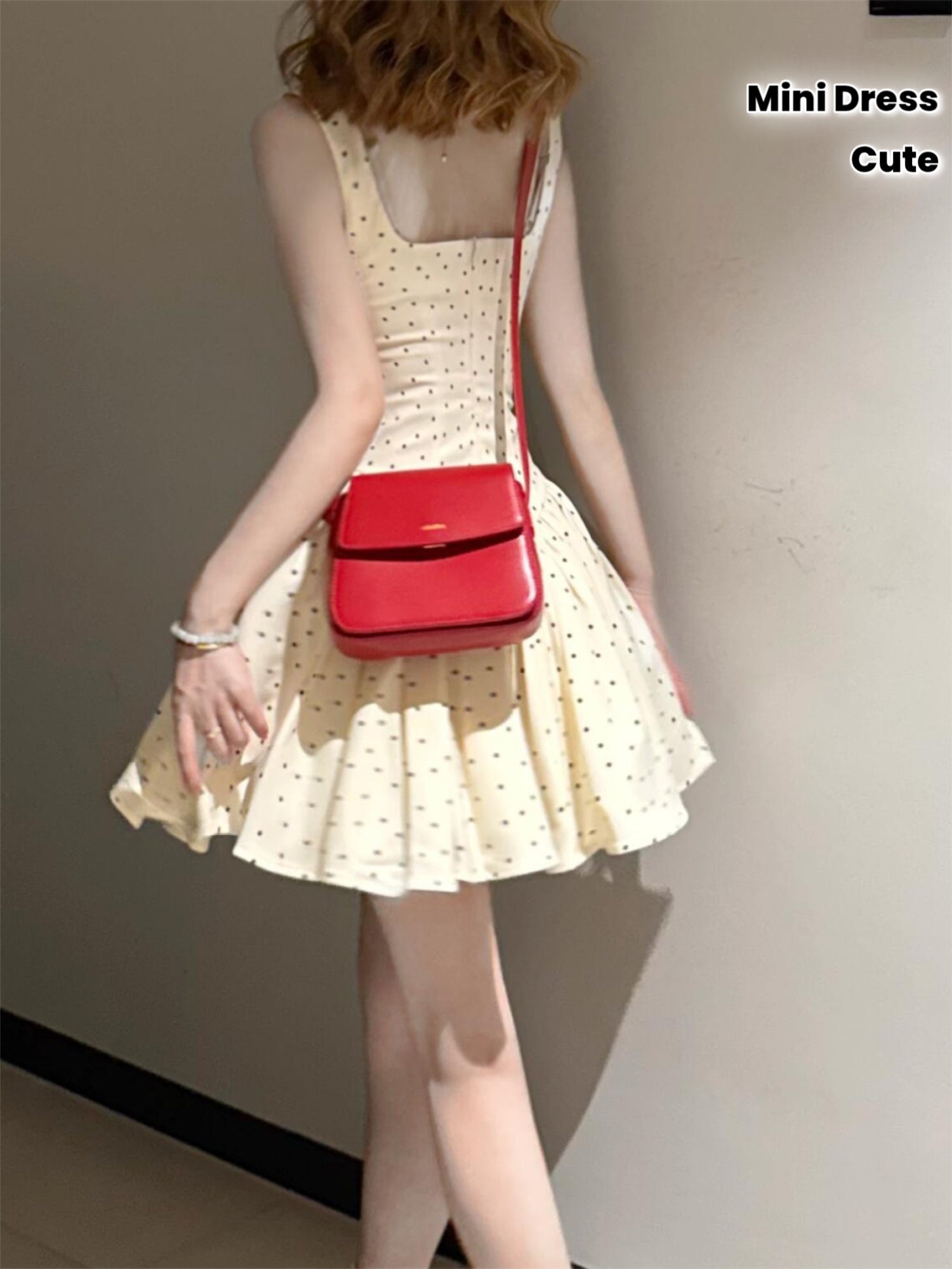 French Chic Dress Summer French-Inspired Polka Dot Dress | Elegant Square Neck Sleeveless Mini Dress for Women - Casual Chic Ruched Detail, Perfect for Petite Figures, 2025 Collection