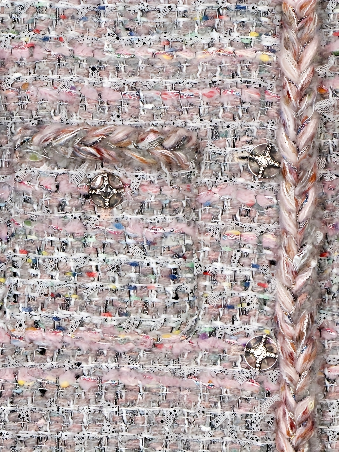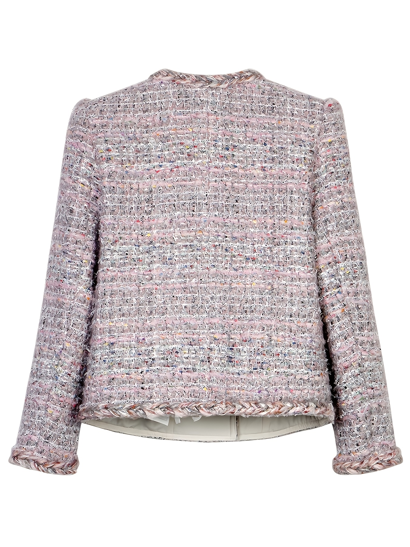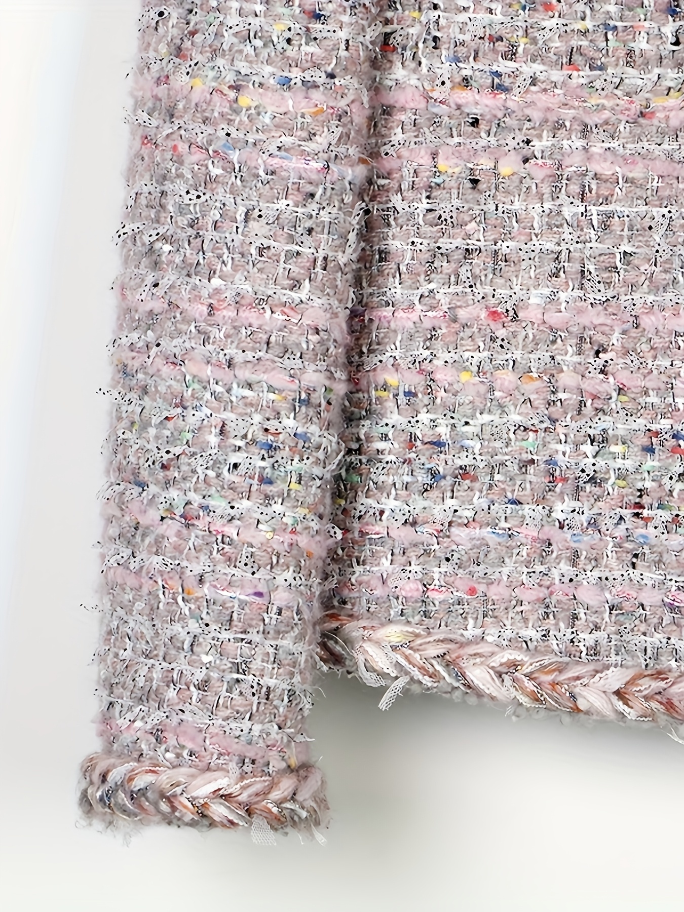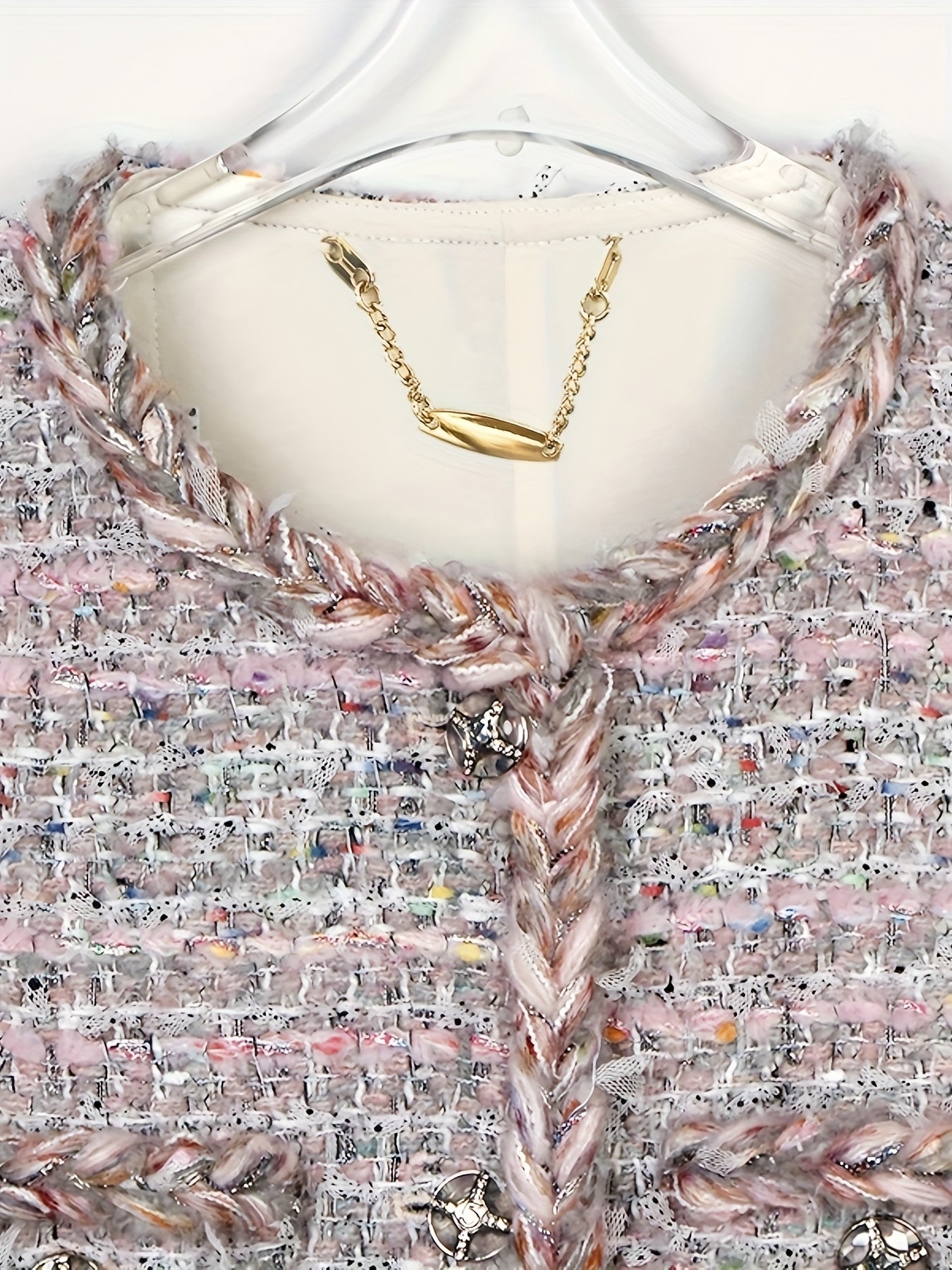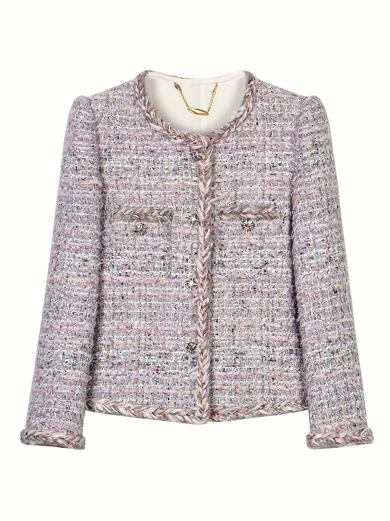 Women'S Casual H-Shaped Multi-Yarn Woven Jacket, Long Sleeves, Polyester And Spandex Blend, Plaid Pattern, Non-Waterproof, Regular Fit, Single-Breasted Round Neck Tweed Jacket Top