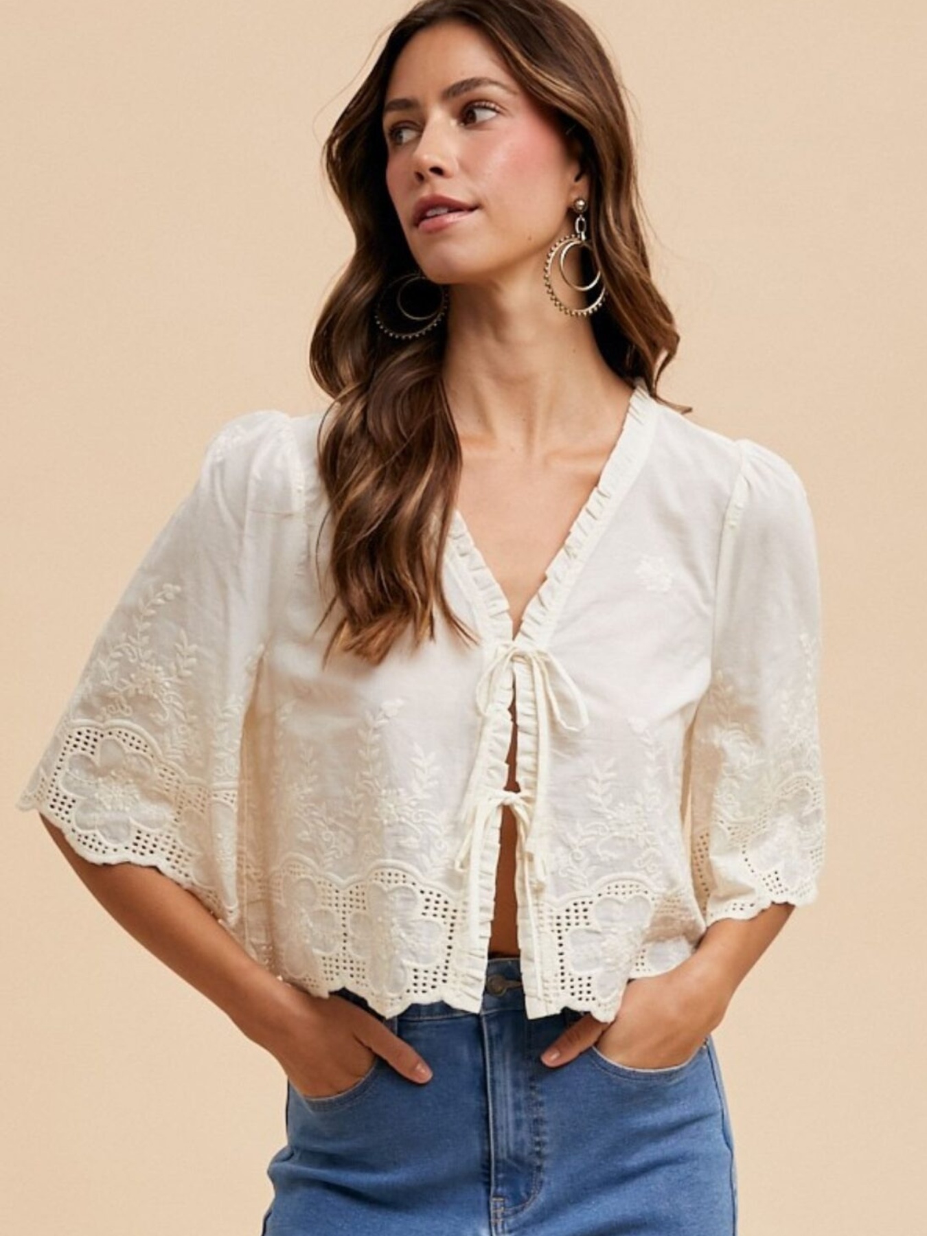 Women's Pink Cropped Blouse - V-Neck Tie Detail & Bubble Sleeves Retro Romantic Top, Short Sleeve Non-Stretch Shirt for Casual Daily Wear & Holiday Outfits, Elegant Special Collection
