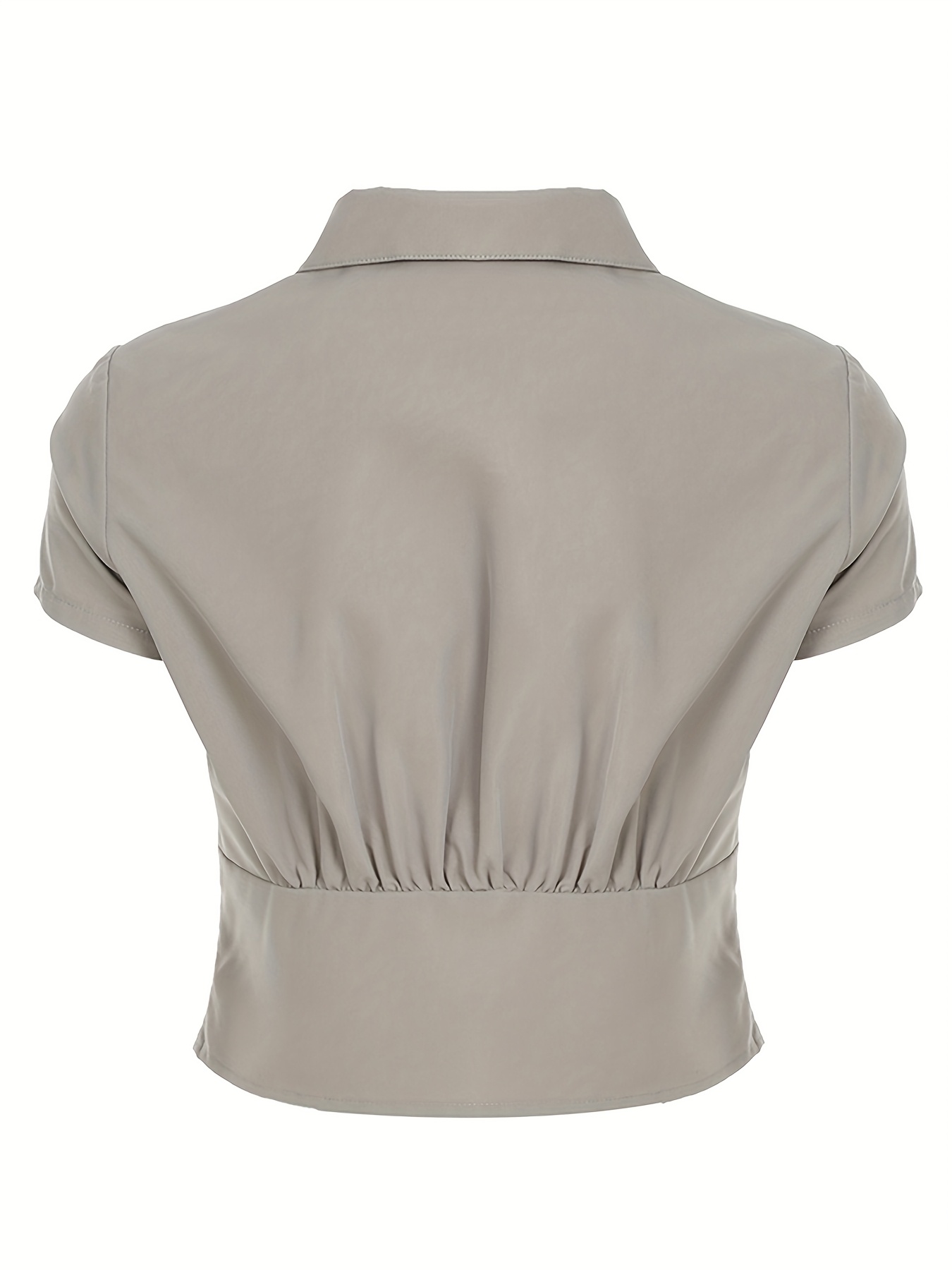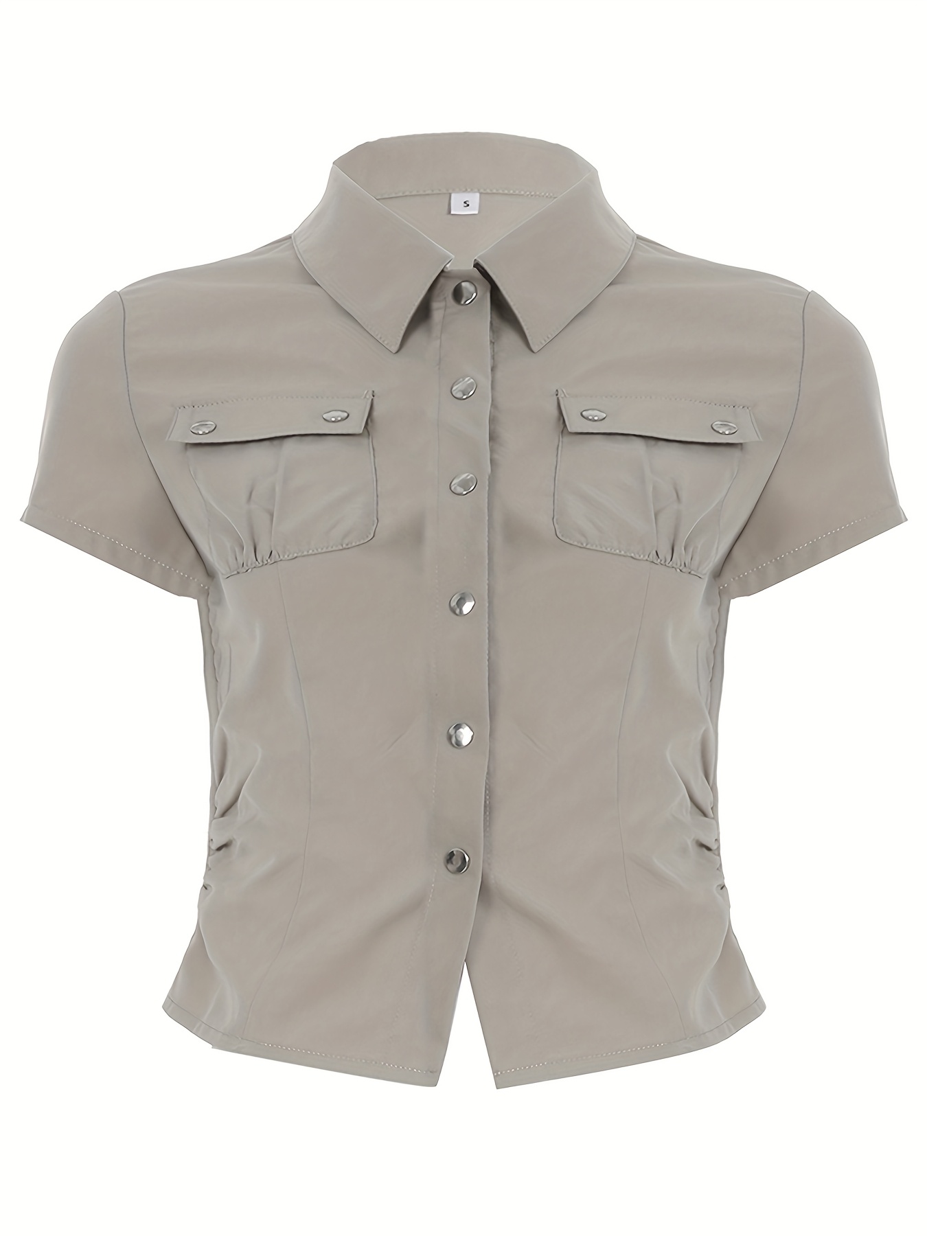 Women's Retro Cargo Shirt with Multiple Pockets & Snap Closure - Short Sleeve Button-Up Summer Top, Breathable Fabric, Machine Washable, Casual Streetwear Style, Casual Attire, Nontransparent Fabric, Structured Design