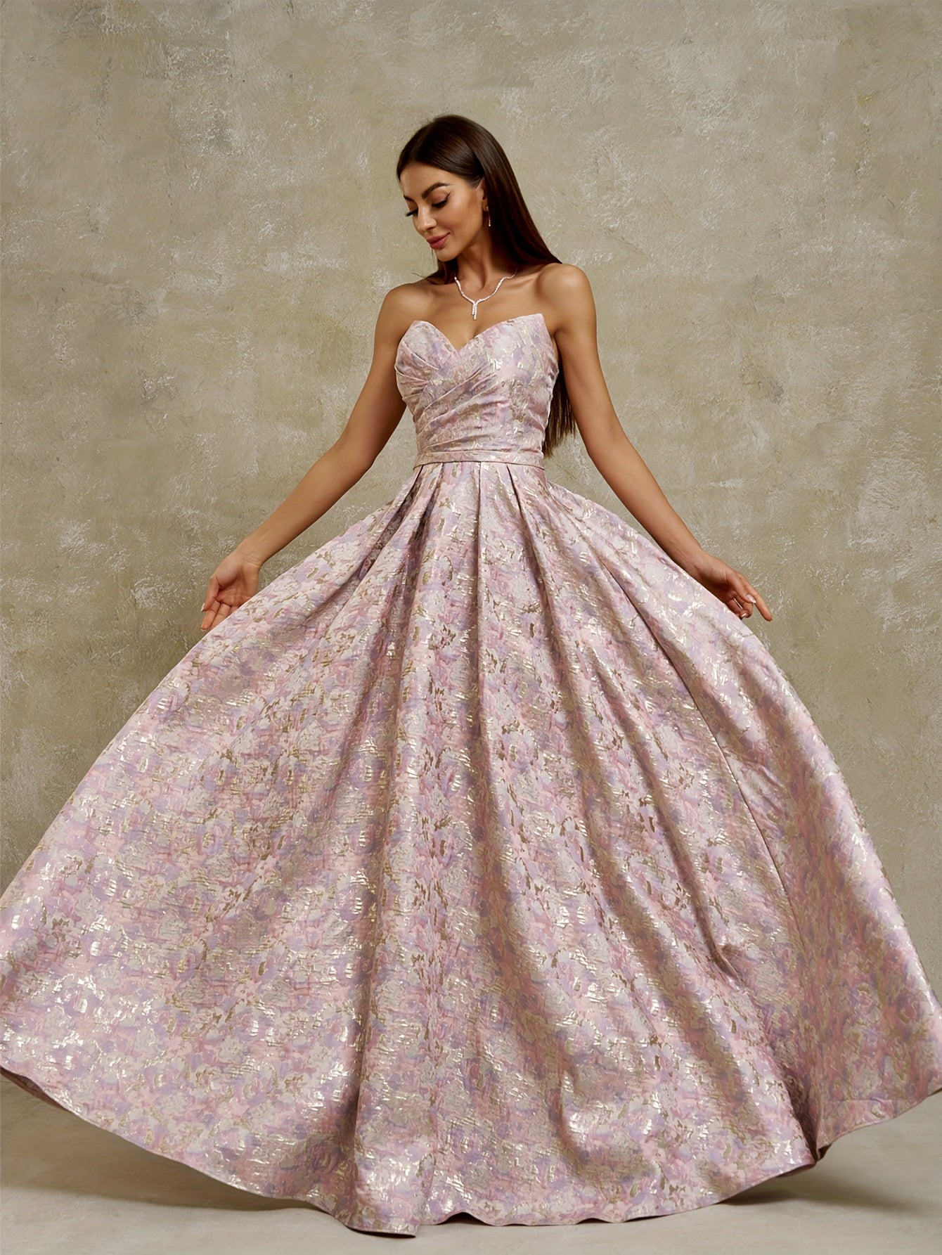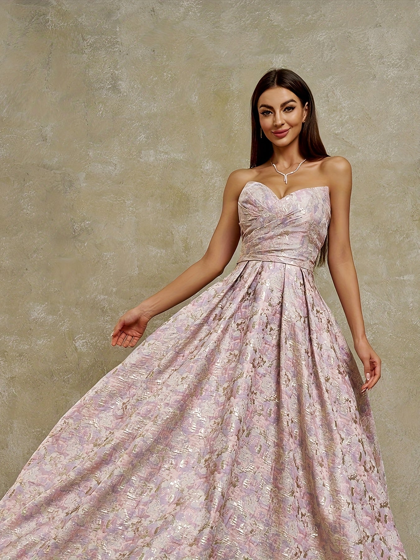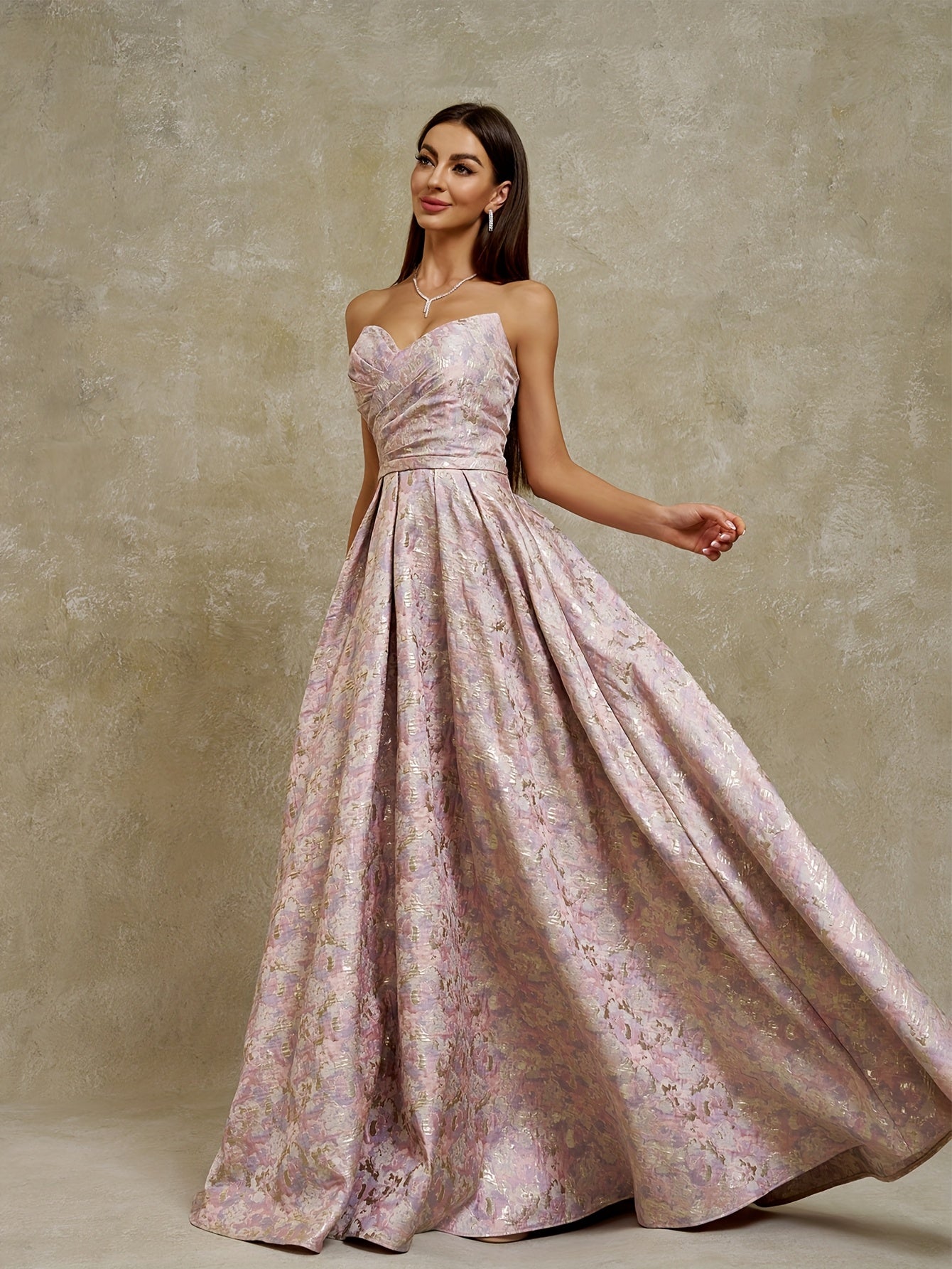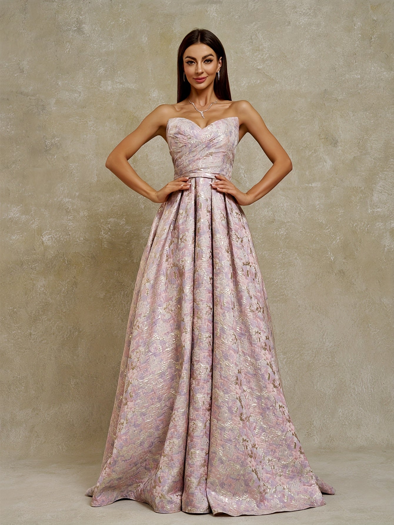 Women's Strapless Geometric Jacquard Evening Gown with Ruffled Hem - Elegant Fitted Top & Flowy Skirt, Hand Wash Only, Perfect for Weddings, Galas, Formal Parties & Family Dinners, Formal Evening Gown